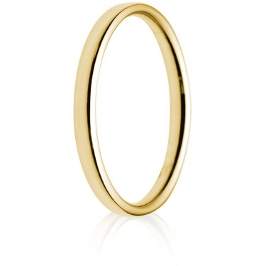 Ein 2mm breiter, leichter (ca. 1,3mm tiefer) Trauring in Gelbgold. Classic bedeutet, dass der Ring im Profil innen und aussen bombiert ist.