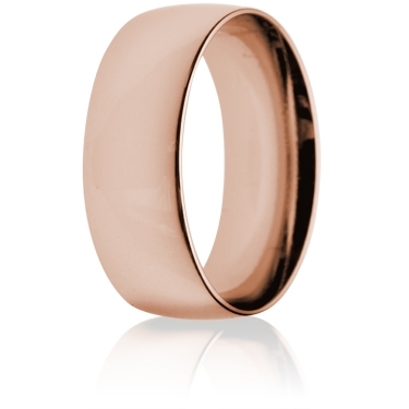 Ein 8mm breiter, medium (ca. 1,7mm tiefer) Ehering in Roségold. Classic bedeutet, dass der Ring im Profil innen und aussen bombiert ist.