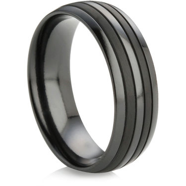 Dekorativer Ring aus Zirkonium mit zwei schwarzen Zirkoniumfugen und drei polierten Fugen. Durch die zwei verschiedenen Finishes bekommt der, hier abgebildete 7mm breite Ring sein gewisses Etwas. Gerne können Sie dem Ring auch eine persönliche Gravur hinzufügen.